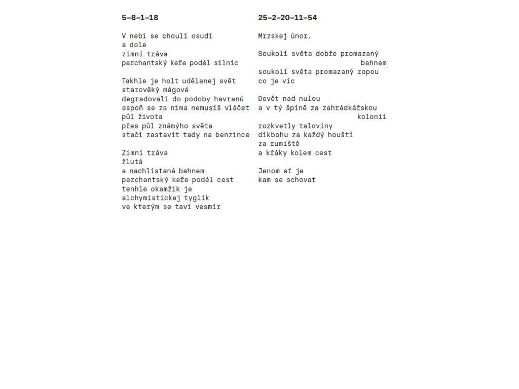 Atlas křoví totiž není jenom sbírkou pozorování vágních prostor, ale metonymií aktuálních společenských dění i zrcadlem zásadních osobních témat, jako je vyrovnávání se se smrtí blízkého člověka. A v posledku přináší především naději – země puká, tráva roste.