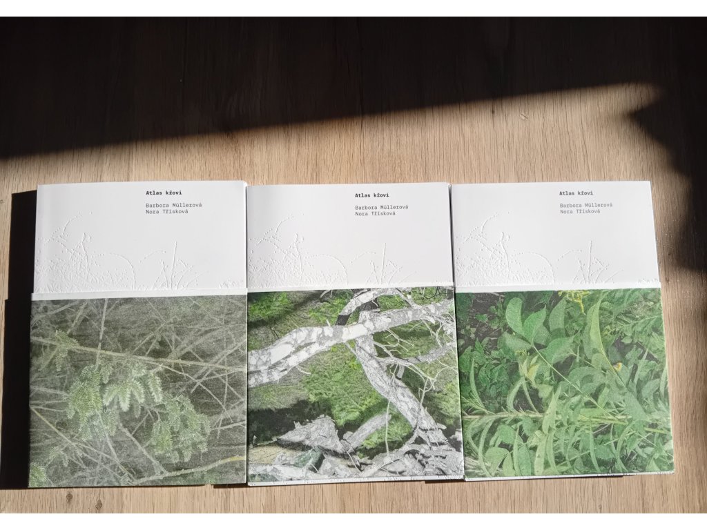 Atlas křoví je básnickou sbírkou ilustrátorky a kurátorky Barbory Müllerové a zároveň fotografickou knihou Nory Třískové, fotografky a hudební publicistky. Obě pěstují dlouhodobý zájem o nemísta na okraji pozornosti – městskou divočinu, vágní terény, rumiště a křáky podél cest – o místa, kde puká asfalt a skrze škáru země se derou křehoučké lodyhy plevelu. V drolícím se řádu zarůstajících parkovišť autorky nacházejí drobné příběhy jejich lidských i mimolidských obyvatel – příběhy života a smrti, hledání blízkosti a bezpečí i procesy spojené s klimatickou změnou a extraktivismem.