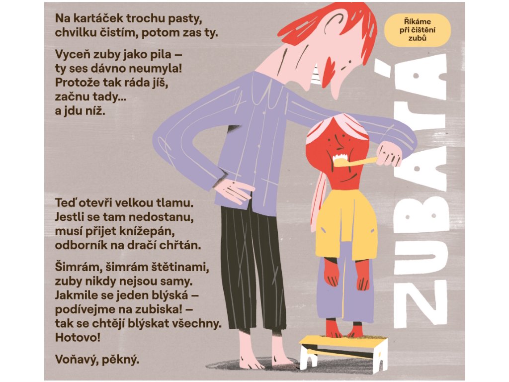 Hravé verše Šimona Petáka pomáhají zvládnout česání i smrkání, rozveselí při drobných karambolech a promění obyčejné chvíle ve společné dobrodružství. Chytlavý rytmus a originální ilustrace Patrika Antczaka zvou ke společnému čtení, opakování a hraní.